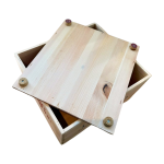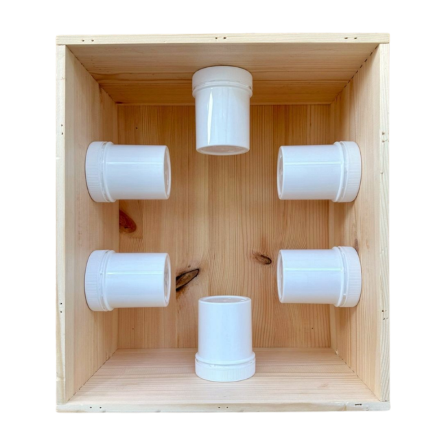 - die Holzbox hat innen 6 dicht abgetrennte Segmente (Kunststoffschraubdosen)