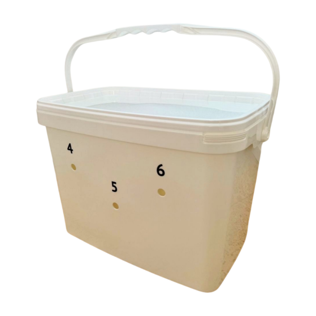 - der Eimer ist mit Sand, Steinen, Beton oder ähnlichem zu beschweren, damit er durch ein leichtes anstossen nicht verschoben oder gekippt werden kann. Beschwerungsmaterial ist in der Lieferung nicht enthalten.