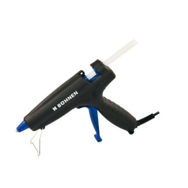Die handliche und einfach zu bedienende BÜHNEN HB 181 Heissklebepistole ist für den Punkt- und Raupenauftrag geeignet und ein zuverlässiges Werkzeug für alle Floristen, Handwerker und Hobbybastler. Ob beim Kleben von Sockelleisten, beim Fixieren und Dekorieren von Blumengestecken, beim Befestigen von Kabeln, beim Basteln oder bei der Reparatur von Werkstoffen aus Holz, Metall, Glas, Keramik oder Leder – mit der leistungsstarken Bühnen HB 181 gelingt das Kleben schnell, sauber und zuverlässig. Die BÜHNEN HB 181 erhitzt einen passenden Schmelzklebstoff aus einem Stick mit einem Durchmesser von 11 bis 12 mm auf ca. 190 °C. Der Stick schmilzt innerhalb von 5 bis 6 Minuten. Nach dem Auftragen ist bereits nach wenigen Sekunden eine stabile Klebeverbindung erreicht. Während der Klebepausen lässt sich die Heissklebepistole mit dem Metallständer in vier verschiedenen Positionen variabel aufstellen.