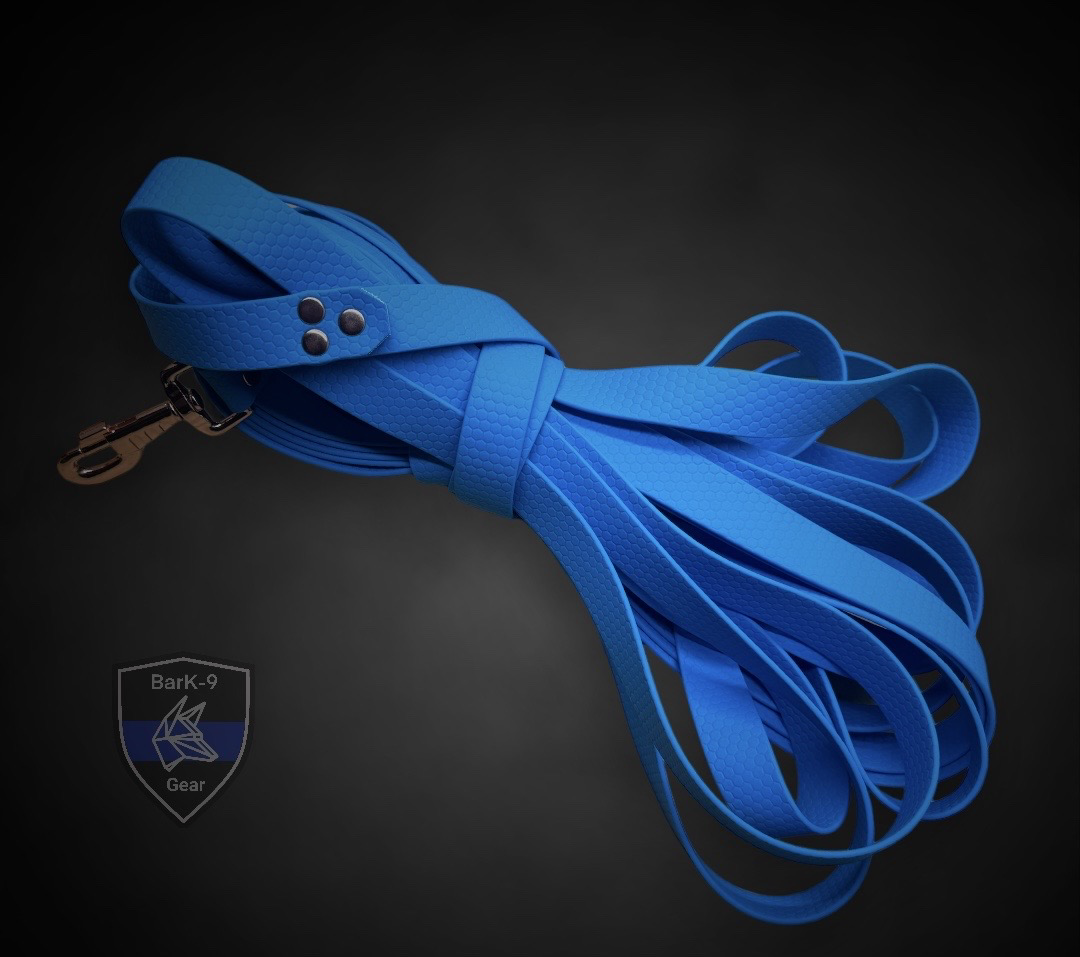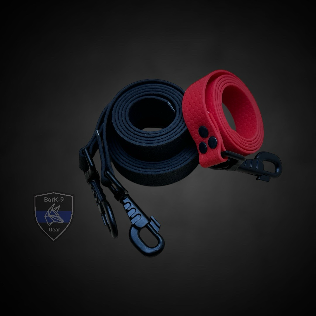 Weitere Farben des Gurtbands sind auf Anfrage erhältlich. Die Leinen werden von BarK-9 Group hergestellt.
