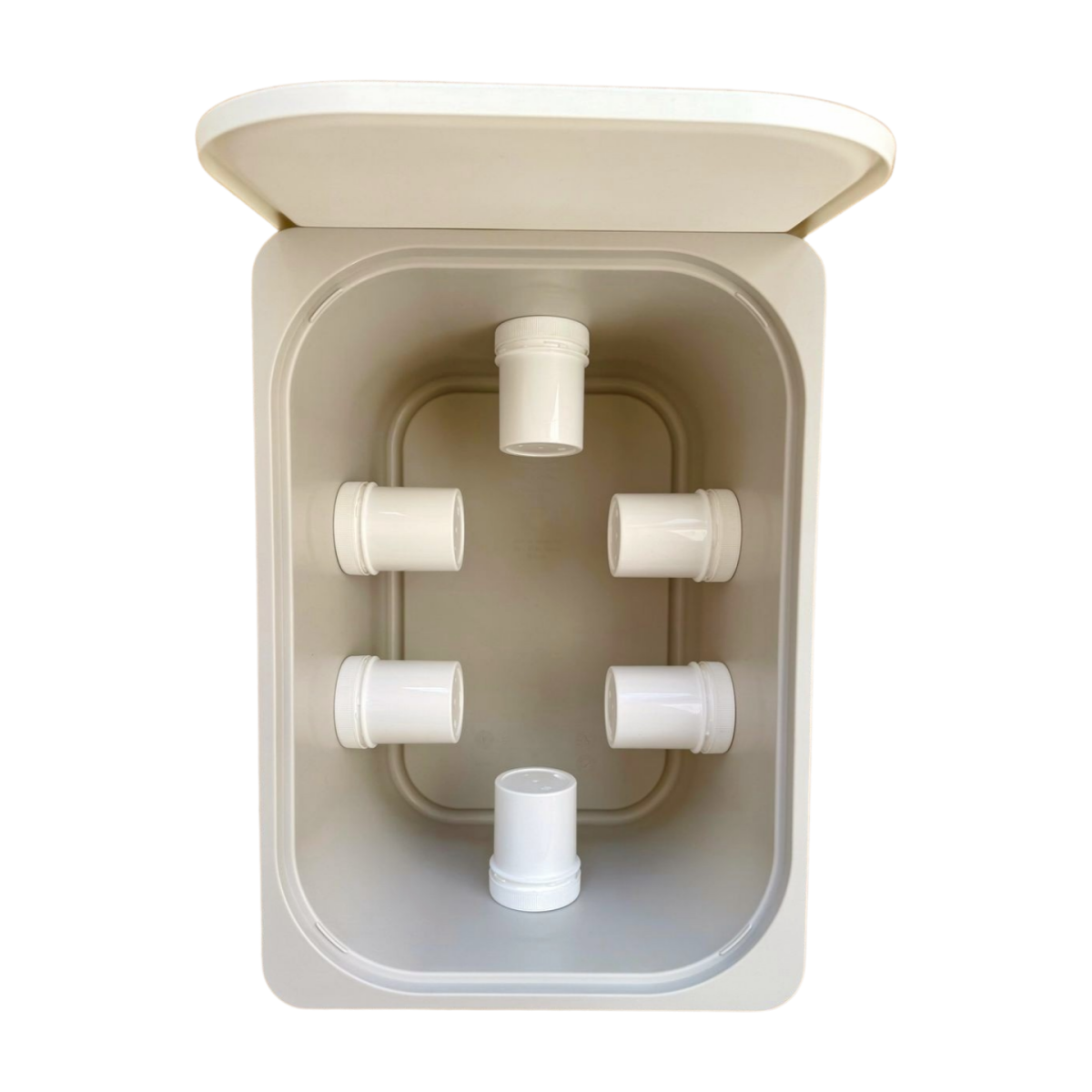 die Box hat innen 6 dicht abgetrennte Segmente (Kunststoffschraubdosen)