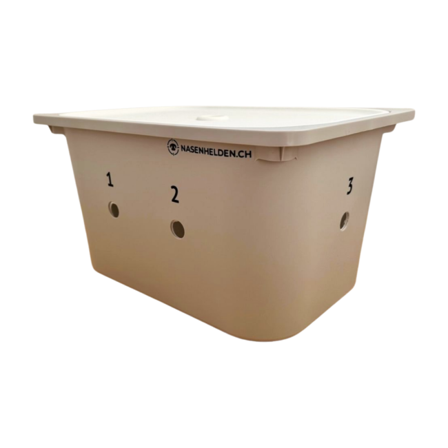 die Box ist mit Sand, Steinen, Beton oder ähnlichem zu beschweren, damit er durch ein leichtes anstossen nicht verschoben oder gekippt werden kann. Beschwerungsmaterial ist in der Lieferung nicht enthalten.