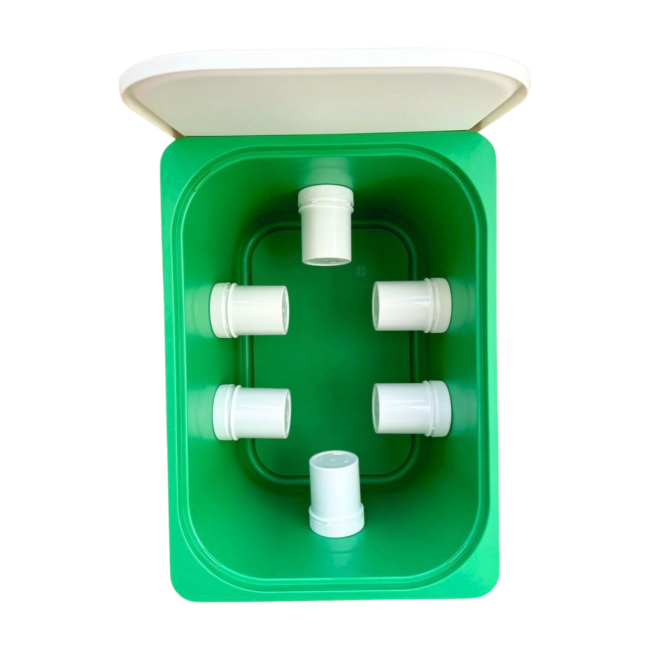 die Box hat innen 6 dicht abgetrennte Segmente (Kunststoffschraubdosen)